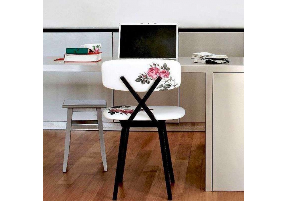 X Chair With Flower firmata da Nika Zupanc per Qeeboo è una sedia strutturata in polipropilene con cuscinatura in tessuto a fantasia floreale. X Chair With Flower viene venduta a set di 2.