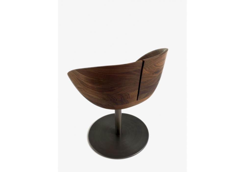 Gioconda firmata da C.R.&S. Riva 1920 è una sedia con schienale e seduta ricavata interamente da liste in legno massello, modellate in una forma avvolgente. Struttura con gamba girevole.