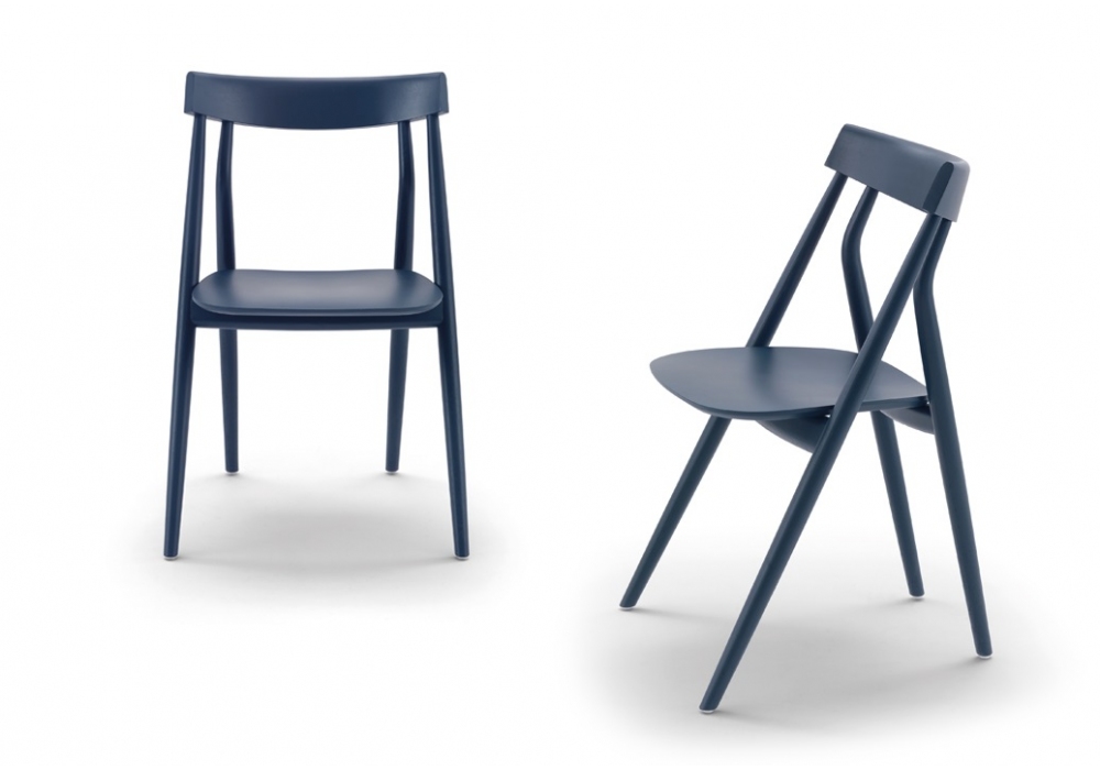 Lizzy firmata da David Dolcini per Arflex è una sedia con struttura in massello curvato di frassino in differenti finiture.