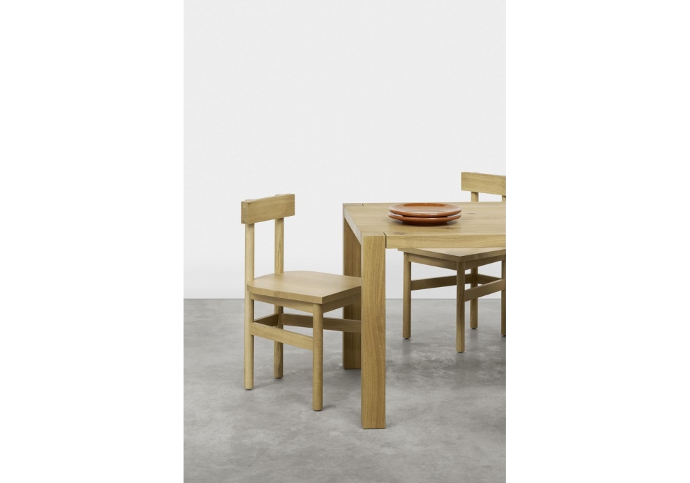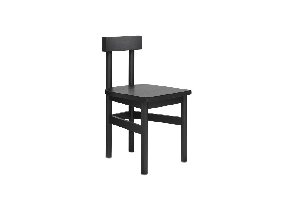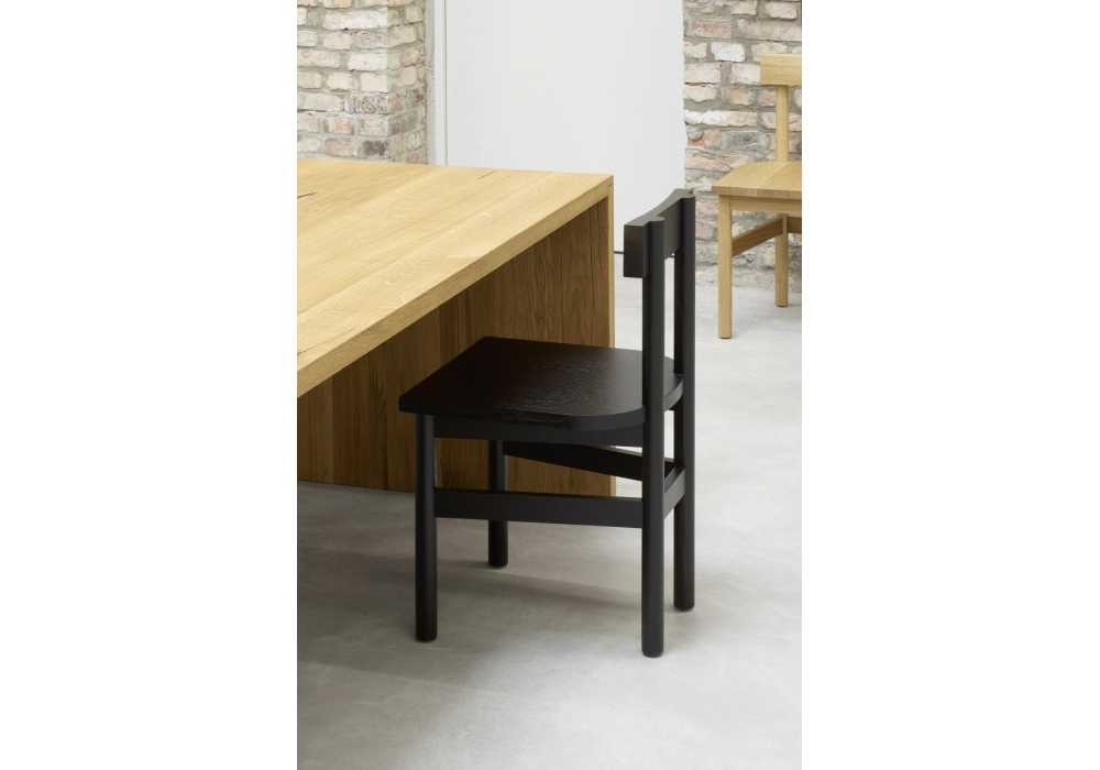 Gamar firmata da Spacon & X per E15 è una sedia con struttura in legno, è realizzata in rovere europeo laccato trasparente o nero.