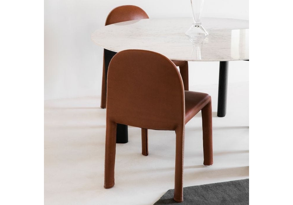 Soiree firmata da Oscar e Gabriele Buratti per Driade è una sedia in poliuretano flessibile a media densità con inserto metallico strutturale. cinghiatura elastica nella seduta e nello schienale per il massimo comfort. Rivestimento fisso in pelle o sfoderabile in tessuto, cuciture decorative su gambe e schienale, piedini in nylon per l’appoggio a terra. Uso solo interno.