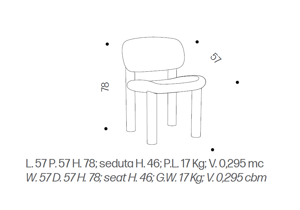 Tottori firmata da Kateryna Sokolova per Driade è una sedia con truttura in poliuretano flessibile a media densità, piedini in PE per l'appoggio a terra. Il rivestimento è fisso con la possibilità di materiali differenti per le gambe rispetto a quelli di seduta e schienale. Uso solo interno.