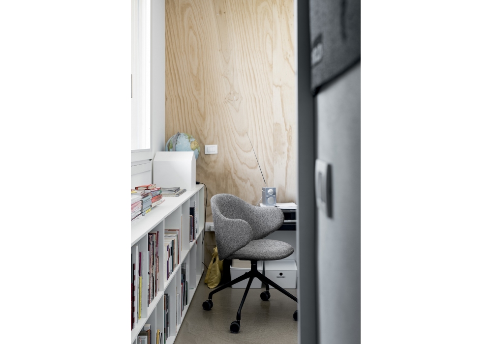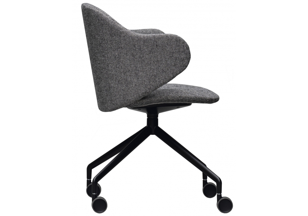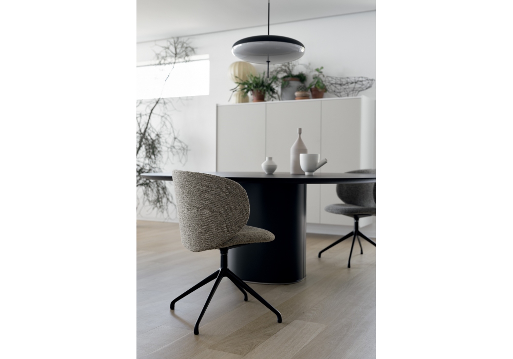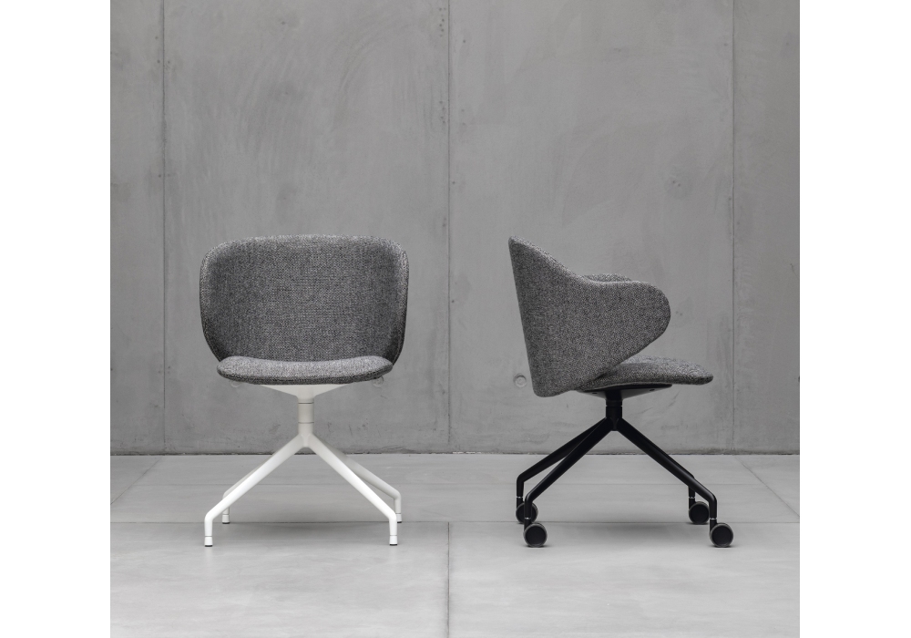 Dua firmata da Läufer & Keichel per Kristalia è una sedia su trespolo girevole disponibile con o senza ruote. Base in alluminio verniciato e scocca imbottita proposta in tre tipologie e rivestita in tessuto o pelle in un'ampia gamma di colori.