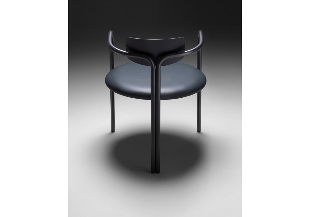 Via Veneto firmata da Minelli Fossati per DeCastelli è una sedia con struttura in acciaio inox brunito nero e seduta in pelle. Schienalino disponibile in diverse finiture.