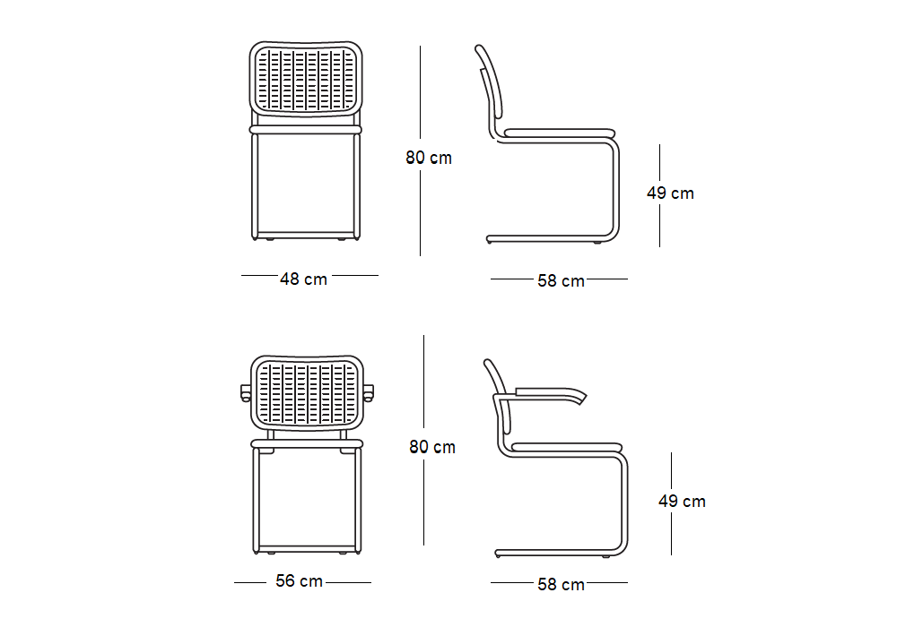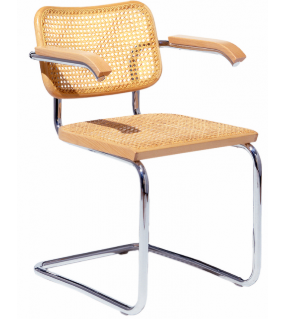 Cesca firmata da Marcel Breuer per Knoll è una sedia con struttura in tubolare in acciaio cromato o verniciato in diverse finiture opache. Schienale in faggio impagliato in finitura verniciato naturale o laccato nero. Seduta rivestita in pelle o tessuto. Disponibile nella versione con o senza braccioli.