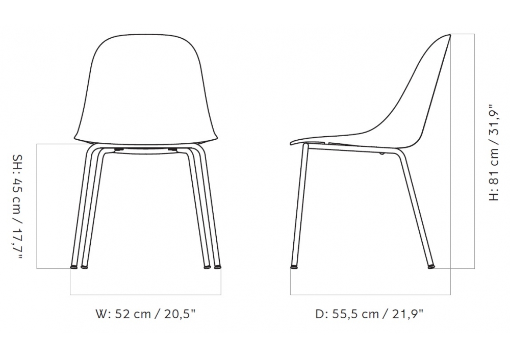 Harbour Side Plastic firmata da Norm Architects per Audo Copenhagen è una sedia realizzata in polipropilene e gambe in acciaio nero. Disponibile in diverse finiture.
