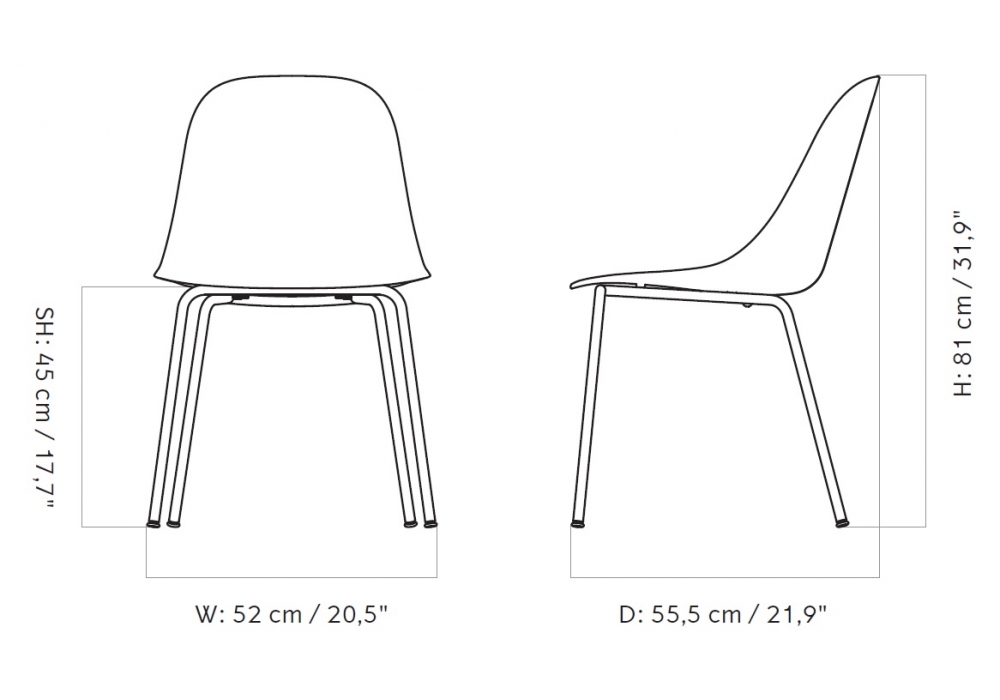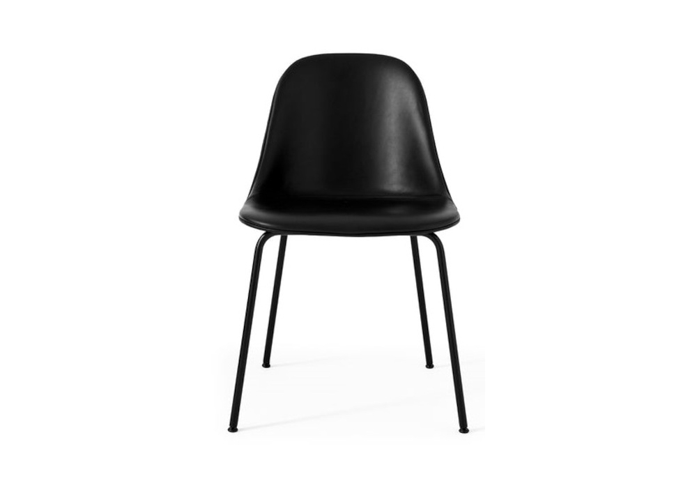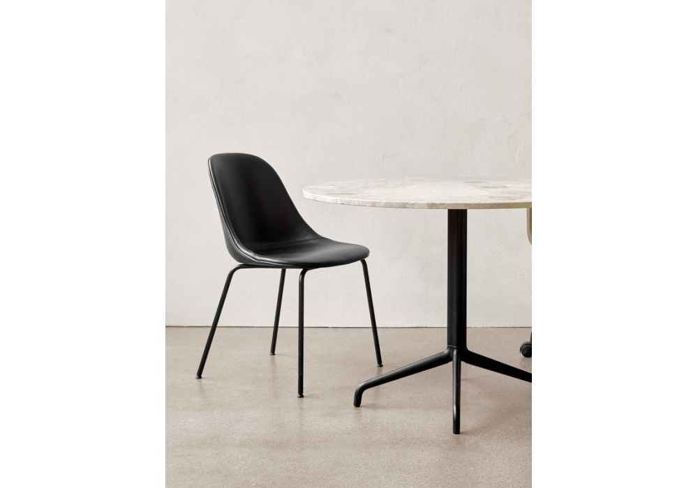 Harbour Side firmata da Norm Architects per Audo Copenhagen è una sedia con scocca imbottita e rivestita in tessuto o pelle, gambe in alluminio verniciato nero. Disponibile in diverse finiture.
