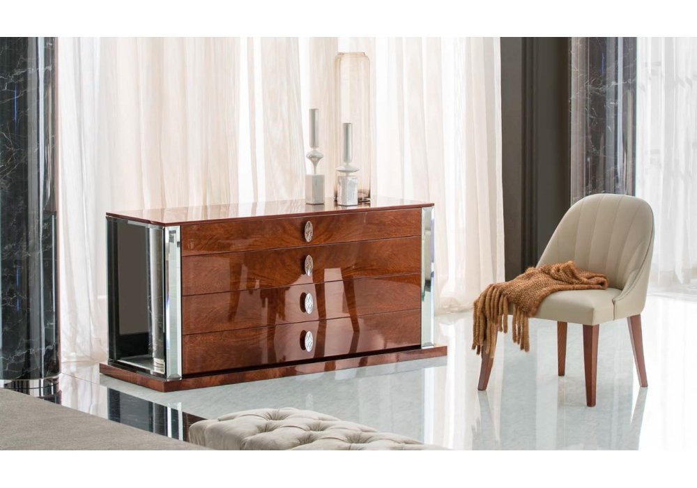 Gilda firmata da Opera Contemporary è una sedia realizzata con struttura in legno, imbottitura in gomma e rivestimento non sfoderabile in tessuto o in pelle.