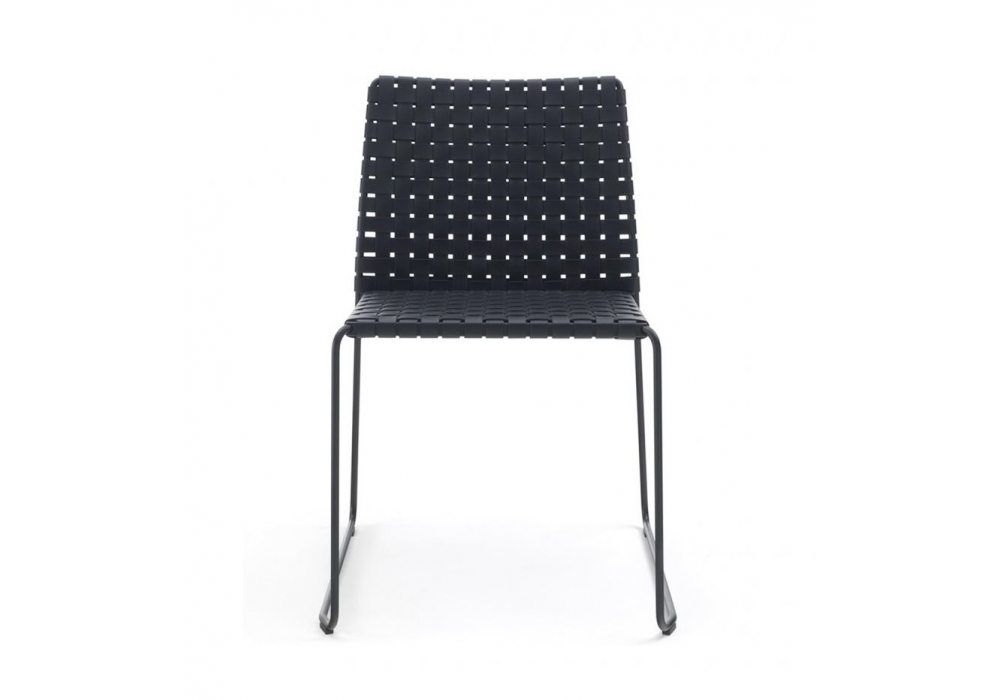 Bizzy Intrecciata firmata da Franco Bizzozero per Enrico Pellizzoni è una sedia con struttura in tondino di acciaio in diverse finiture, sedile e schienale rivestiti in cuoio intrecciato. Sottosedile in lamiera rivestito in tessuto tecnico nero. Disponibile con o senza braccioli.
