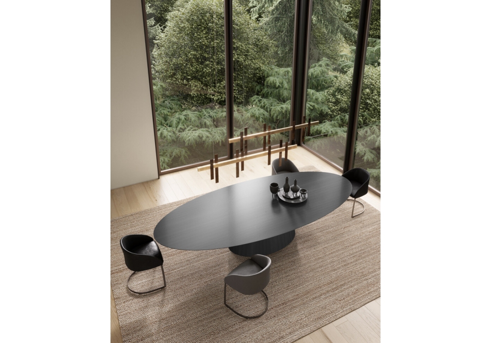Sign firmata da Giuliano Cappelletti per Emmemobili è una sedia con telaio strutturale in metallo e imbottitura in schiumato rivestito in pelle o velluto. La base, leggermente flettente, può essere realizzata in acciaio o in ottone.