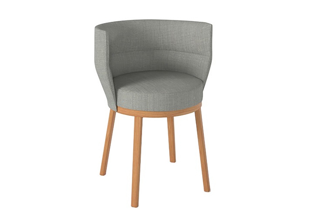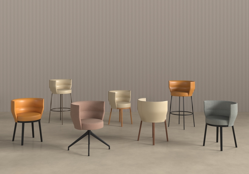 Sena firmata da Christophe Pillet per Punt è una sedia con struttura impiallacciata noce o rovere e schienale curvo in multistrato di faggio rivestito in tessuto o pelle in differenti finiture.