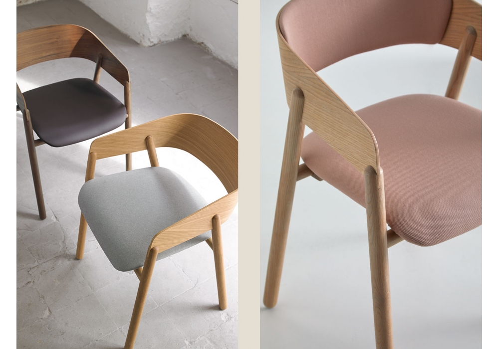 Mava firmata da Stephanie Jasny per Punt è una sedia rivestita con struttura in legno di rovere o noce. É possibile scegliere la versione con schienale e seduta rivestiti o solo seduta. Disponibile in differenti finiture.