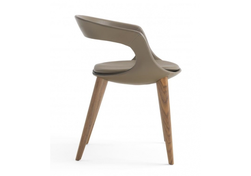 Frenchkiss Wood firmata Stefano Bigi per Enrico Pellizzoni è una sedia con gambe in legno, scocca in metallo, poliuretano espanso, rivestita in pelle, ecopelle o feltro. Cuscino sottile integrato. Disponibile in diverse finiture e modelli.
