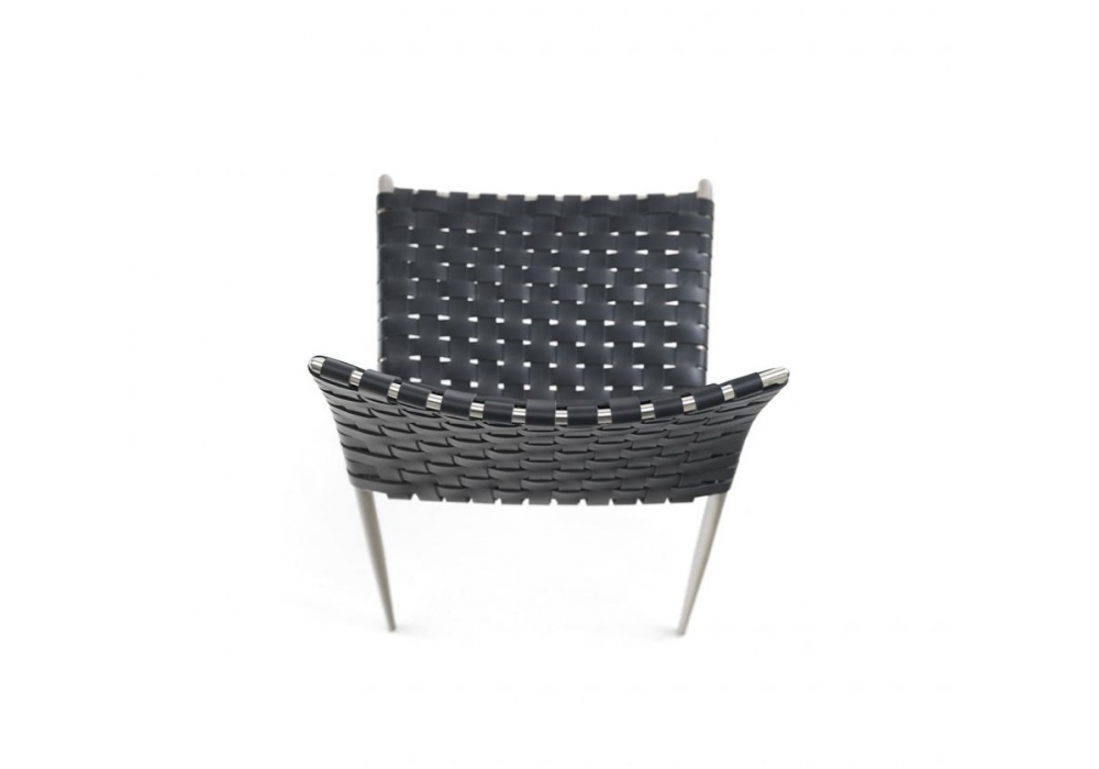 Gazzella Intrecciata firmata da Tom Kelley per Enrico Pellizzoni è una sedia con struttura metallica, in varie finiture. Sedile e schienale rivestiti in cuoio intrecciato. Disponibile anche nella versione con braccioli rivestiti.