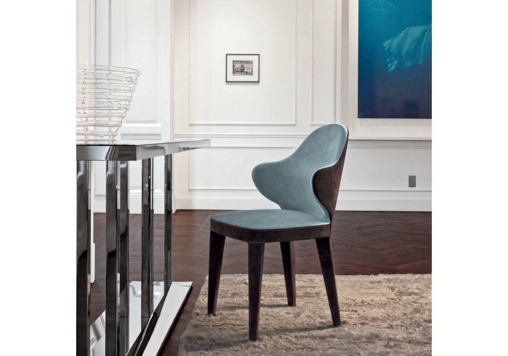 Miss firmata da Giuseppe Viganò per Longhi è una sedia con struttura in legno con cinghie elastiche e schienale in compensato