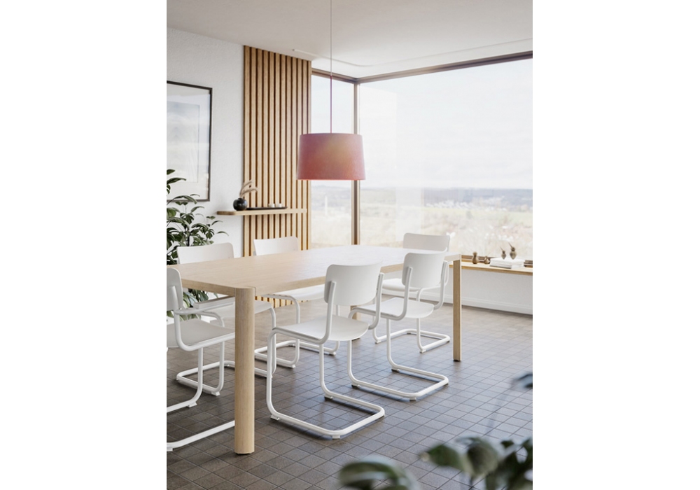 S 43 PV / S 43 PVST firmata da Mart Stam per Thonet è una sedia realizzata in tubolare d’acciaio cromato seduta e schienale in compensato sagomato imbottiti e rivesti in tessuto, pelle o cuoio. Disponibile in diverse finiture e nella versione impilabile o non impilabile.
