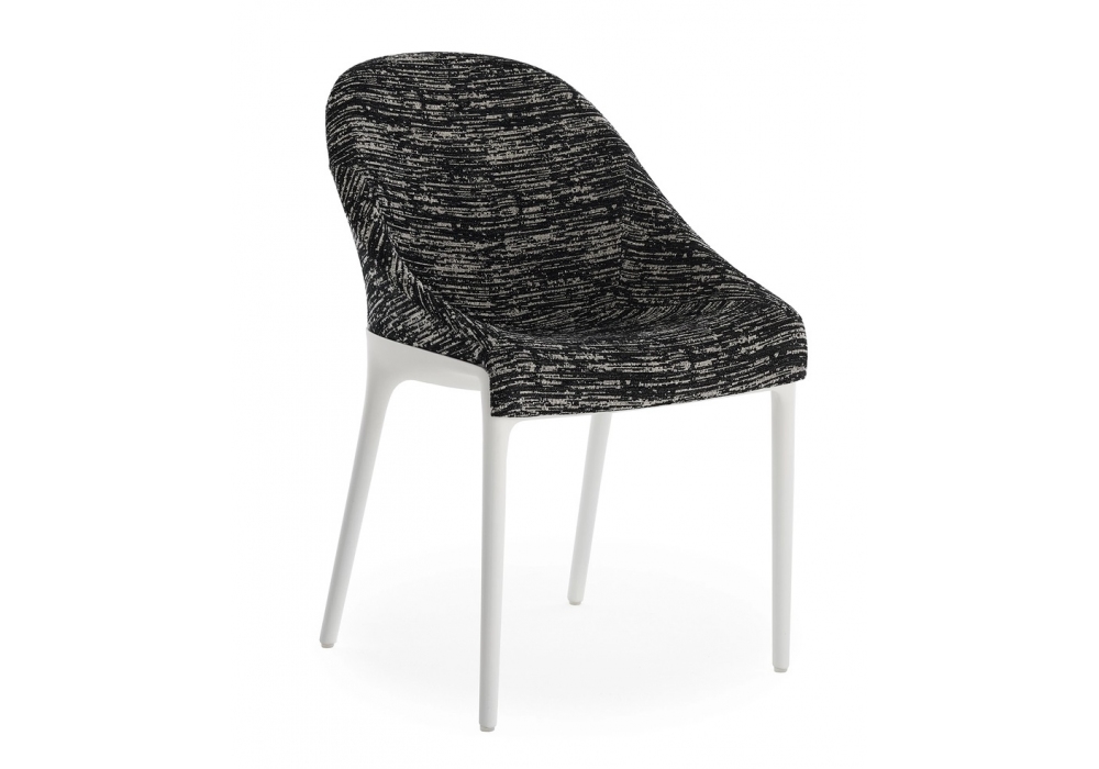 Eleganza Ela firmata da Philippe starck per Kartell è una sedia realizzata con struttura in tecnopolimero termoplastico colorato in massa riciclato e riciclabile e seduta in poliuretano rivestito in tessuto in parte riciclato post industriale.