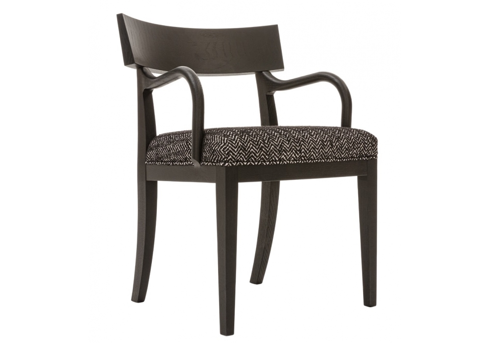 Despina firmata da Antonio Citterio per Maxalto è una sedia con braccioli realizzata con struttura in rovere e sedile imbottito con rivestimento in tessuto o pelle.