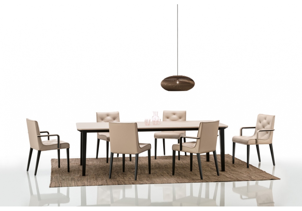 Leslie firmata da Soda Designers - Nasrallah & Horner per Wittmann è una sedia con struttura in legno e metallo con rivestimento in tessuto, velluto o pelle. Disponibile in due versioni con braccioli e senza braccioli e in differenti finiture.