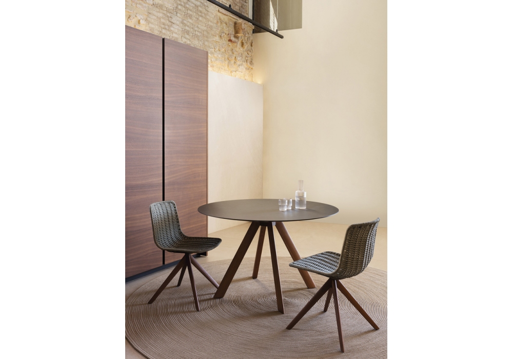 Lapala firmata da Javier Pastor per Expormim è una sedia intrecciata con base piramidale in legno. Disponibile in differenti finiture e due versioni.