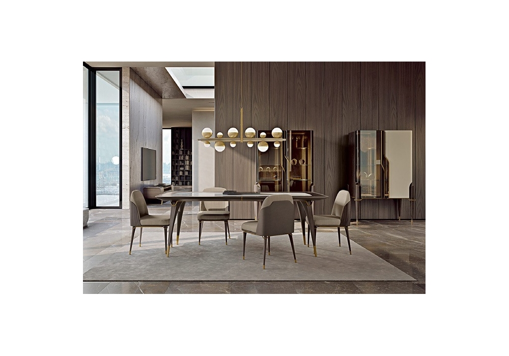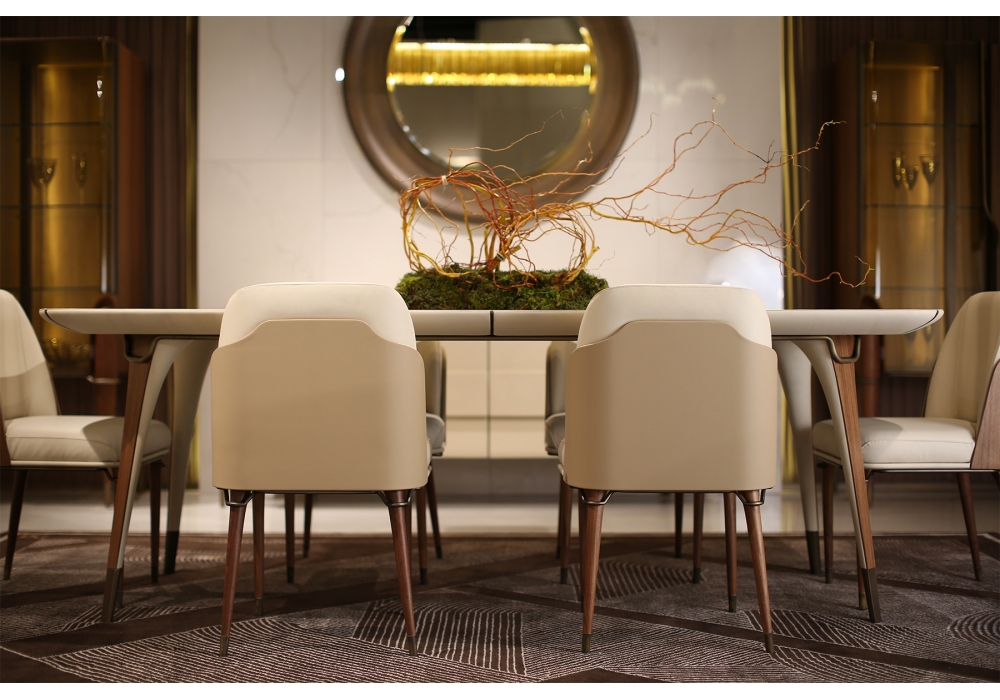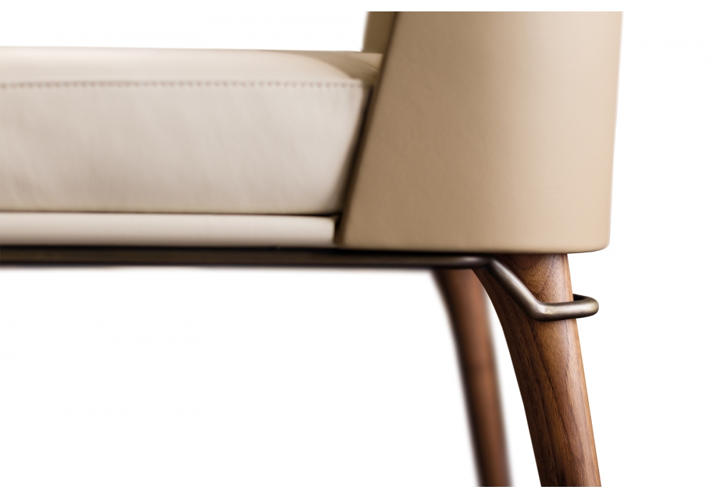 Melting Light firmata da Frank Jiang per Turri è una sedia con struttura in multistrato e legno impiallacciato di noce e gambe in massello di noce. Cuscino seduta e schienale realizzati in poliuretano espanso a quote differenziate con rivestimento non sfoderabile in pelle o tessuto. La scocca può essere realizzata in legno di noce o rivestita in pelle. Parti metalliche in finitura oro o bronzo spazzolato.