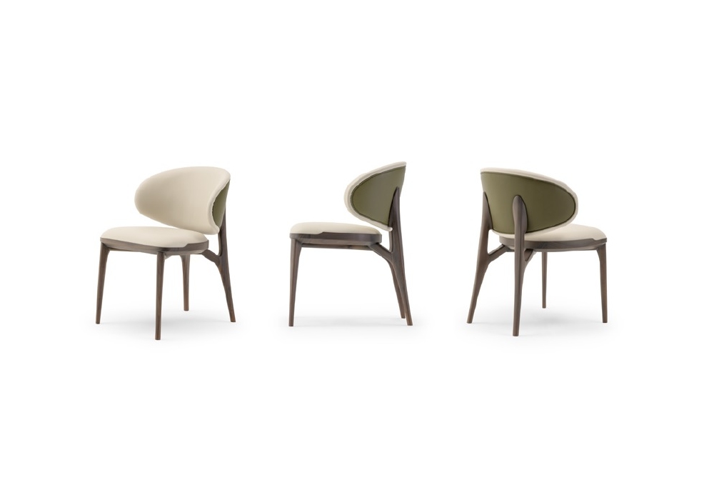 Pinnacle firmata da Huang Quan per Turri è una sedia con struttura in multistrato e legno massello di noce e rivestimento non sofderabile in tessuto o pelle. Piedini con gommino protettivo. La scocca può essere realizzata in differenti pelli o tessuti.