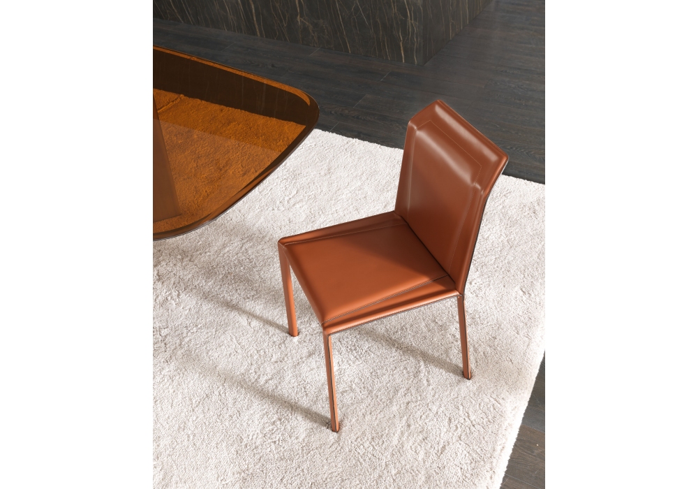 Brera firmata da Francesco Lucchese per MisuraEmme è una sedia realizzata con struttura interna in tubolare ovale e rivestimento in cuoio. Sedile e schienale imbottiti.