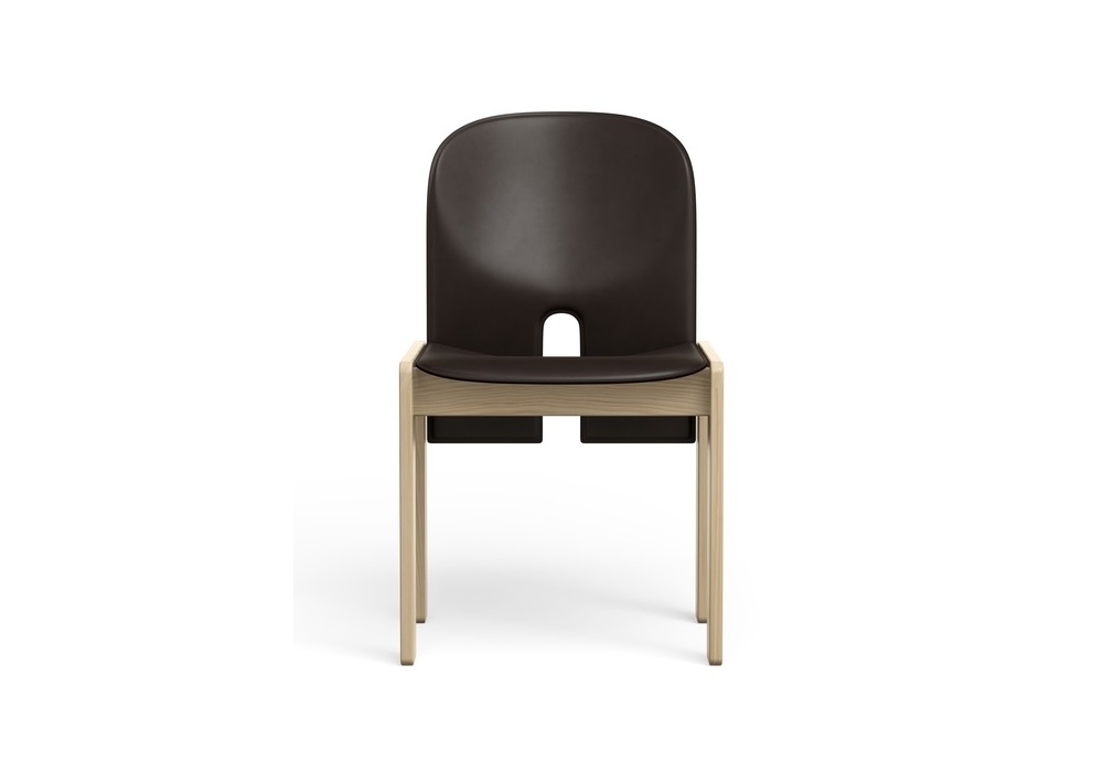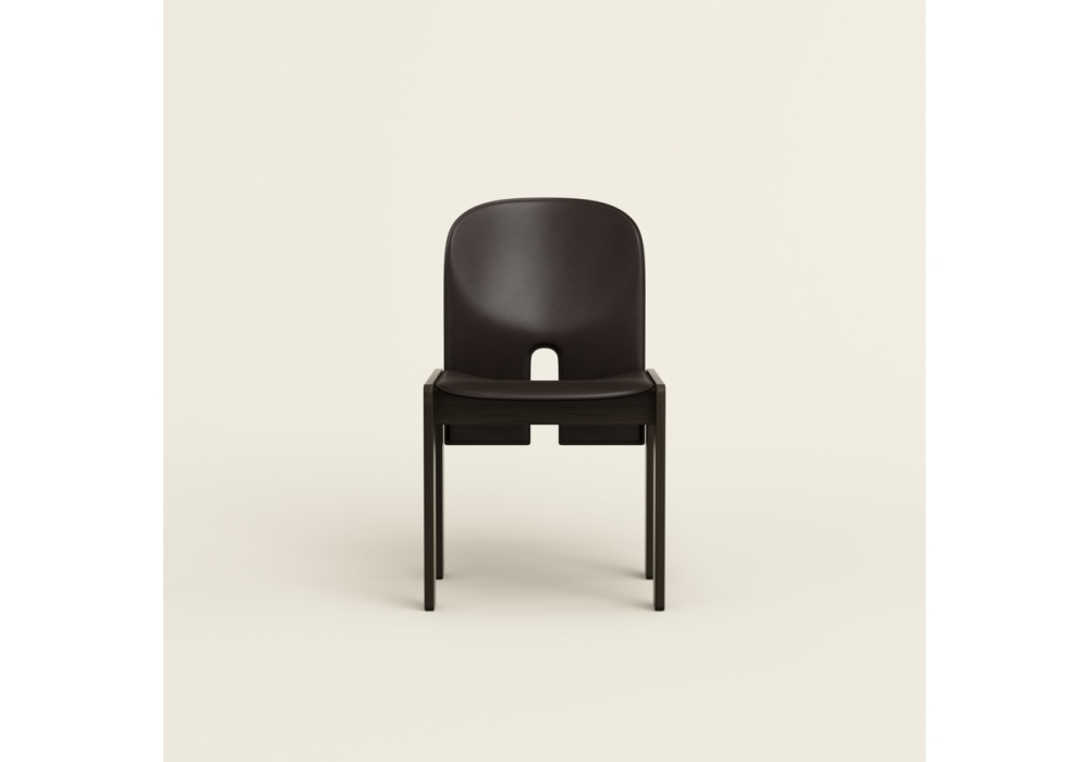 Scarpa 121 firmata da Afra & Tobia Scarpa per Karakter è una sedia realizzata con struttura in massello di frassino, rivestimento in cuoio e piedini in plastica.