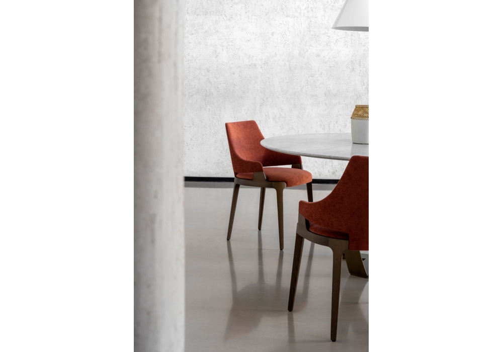 Velis Dining firmata da Mario Ferrarini per Potocco è una sedia con struttura in massello di frassino o di noce canaletto in differenti finiture. Seduta e schienale sono imbottiti con schiuma poliuretanica ignifuga e rivestiti in svariati tipi di tessuto, pelle o ecopelle.