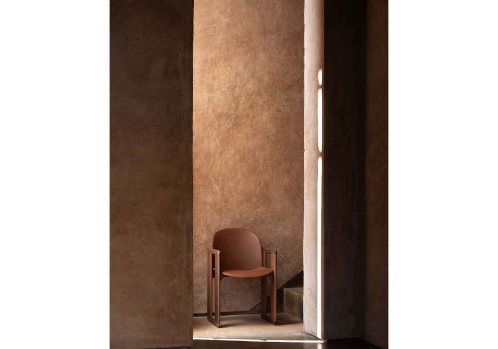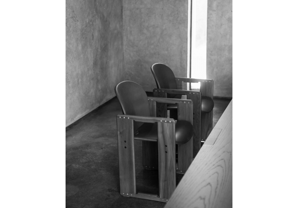 Dialogo firmata da Tobia Scarpa per Tacchini è una sedia con struttura rettangolare dai bordi arrotondati in legno di frassino tinto, noce Canaletto o laccato lucido. La seduta è rivestita con vari tessuti.