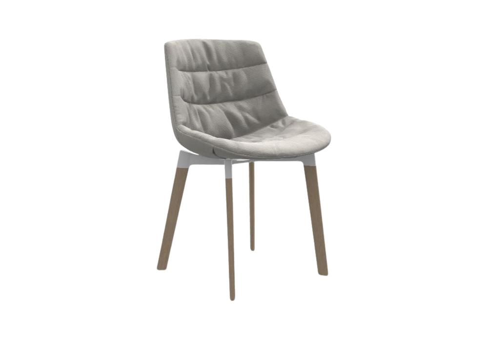 Flow Textile Cross Rovere firmata da Jean Marie Massaud per MDF Italia è una sedia con scocca composta da controscocca termoformata ed imbottita, rivestimento sfoderabile. Struttura in pressofusione di alluminio verniciato a polveri epossidiche in vari colori, e gambe in massello di rovere naturale laccato trasparente, disponibile in diverse finiture.