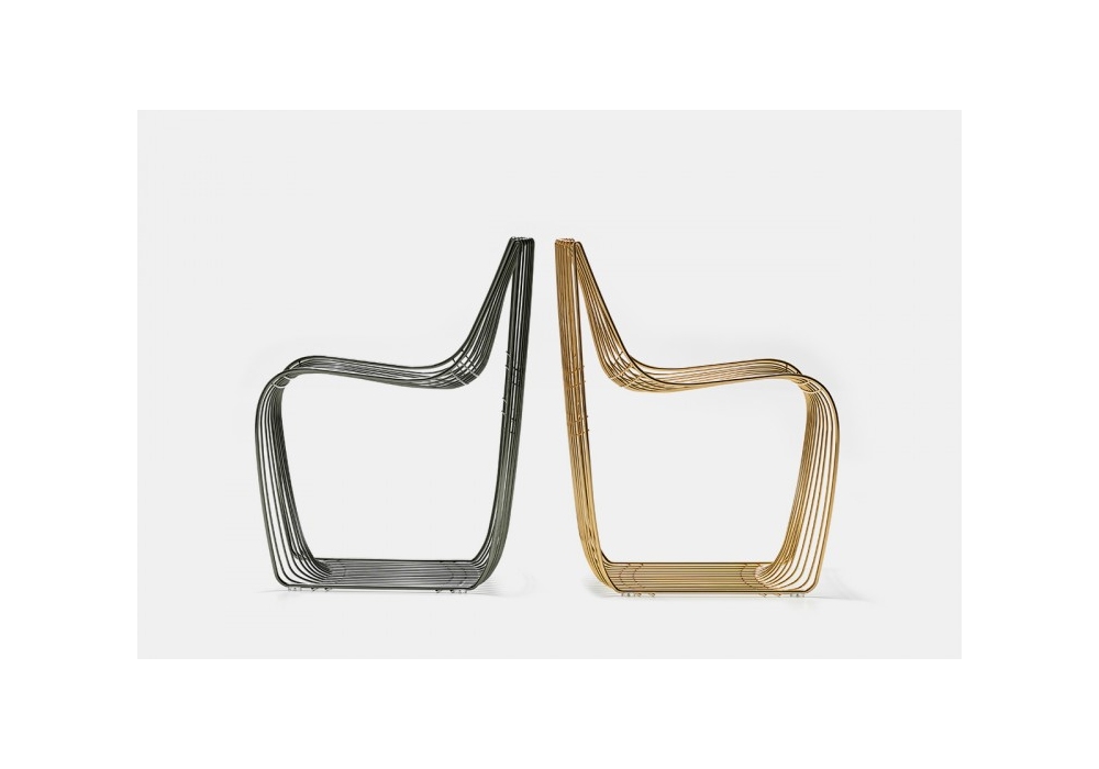 Sign Filo firmata da Piergiorgio Cazzaniga per MDF Italia è una sedia con struttura progettata utilizzando sottili fili di metallo, di differente diametro, disponibile in varie finiture galvaniche. Il prodotto è destinato al solo uso interno.