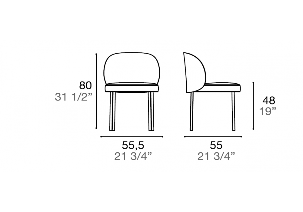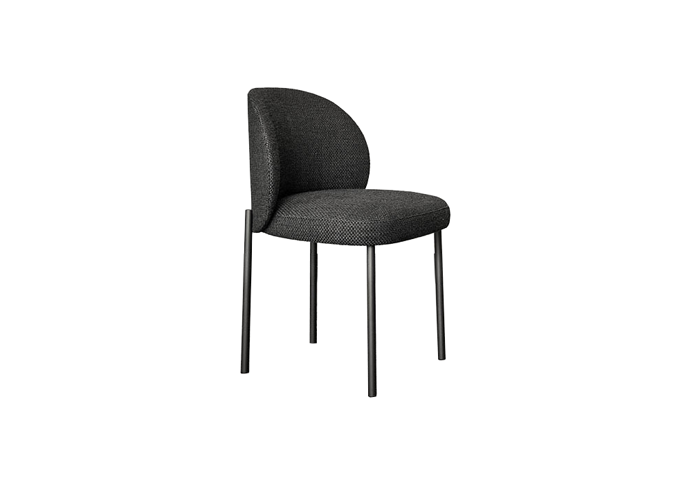 Raku firmata da Gordon Guillaumier per Alf Dafrè è una sedia con gambe in metallo in finitura Moka Shine e rivestimento in differenti tessuti o pelli.