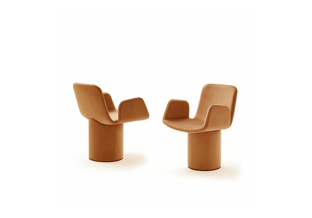 Brera firmata da Dainelli Studio per Mogg è una sedia imbottita con o senza braccioli, con struttura in multistrato curvato e piastra a terra in metallo nero. Rivestimento in tessuto o in pelle.
