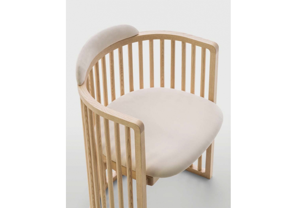 Palù firmata da Raffaella Mangiarotti per Pianca è una sedia realizzata con struttura in massello di noce Canaletto o frassino tinto. Rivestimento in tessuto, pelle o in pelle sintetica, non sfoderabile.