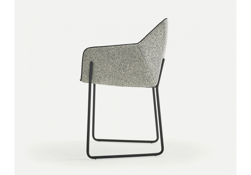 Nido Sled firmata da Rafa García per Sancal è una sedia con gambe a slitta in metallo laccato, seduta e schienale imbottiti rivestiti in tessuto o pelle. Disponibile in divere finiture e nella versione con trapunta o senza.