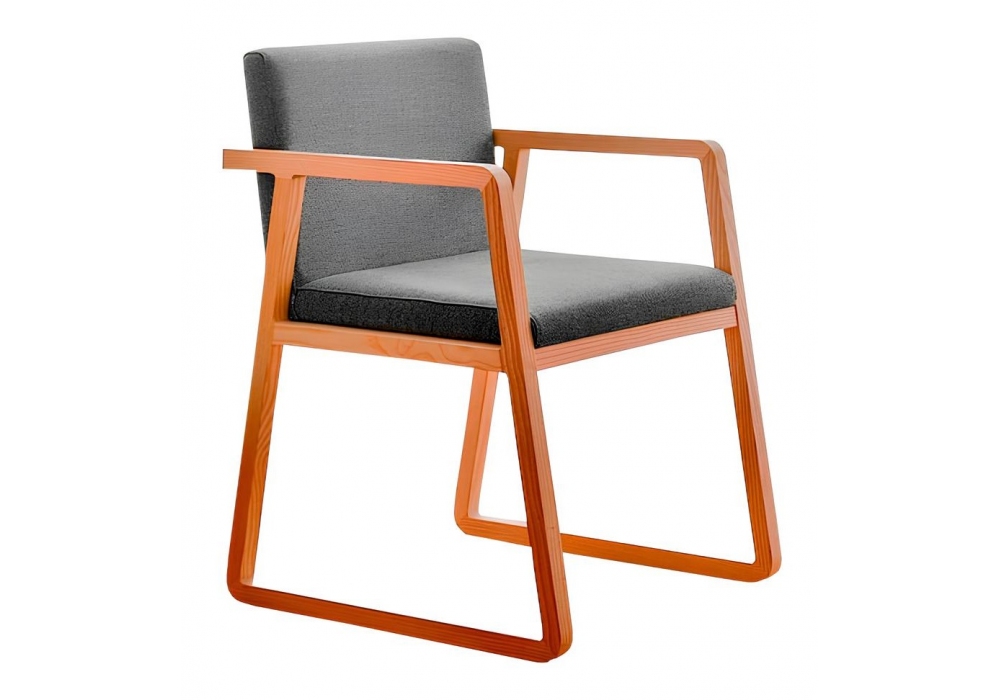Midori firmata da Ebualà per Sancal è una sedia realizzata in legno, seduta e schienale imbottiti rivestiti in tessuto o pelle. Disponibile in diverse finiture e nella versione con o senza braccioli.