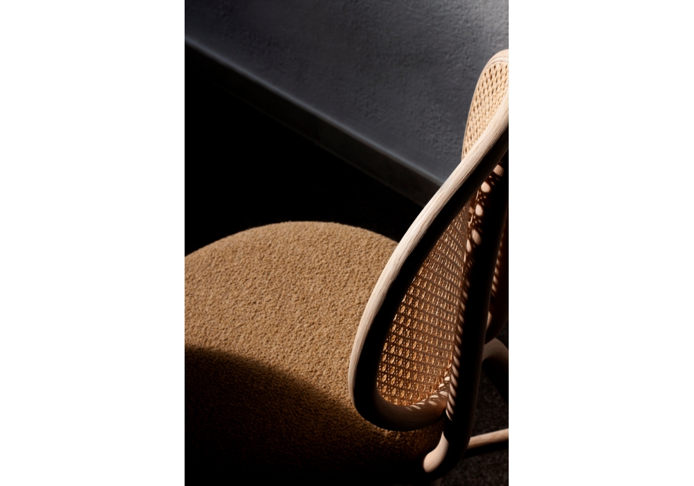Loop firmata da Norm Architects per Expormim è una sedia con struttura in rattan, seduta imbottita rivestita in tessuto. Disponibile in diverse finiture.