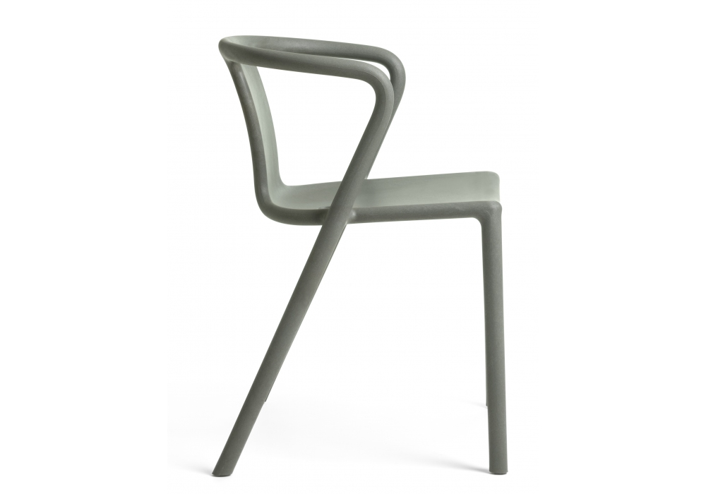 RE Air-Armchair firmata da Jasper Morrison per Magis è una sedia impilabile con braccioli in poliolefine in finitura grigia. Adatta anche per ambienti esterni.