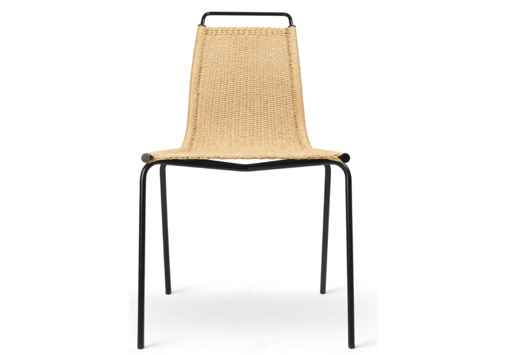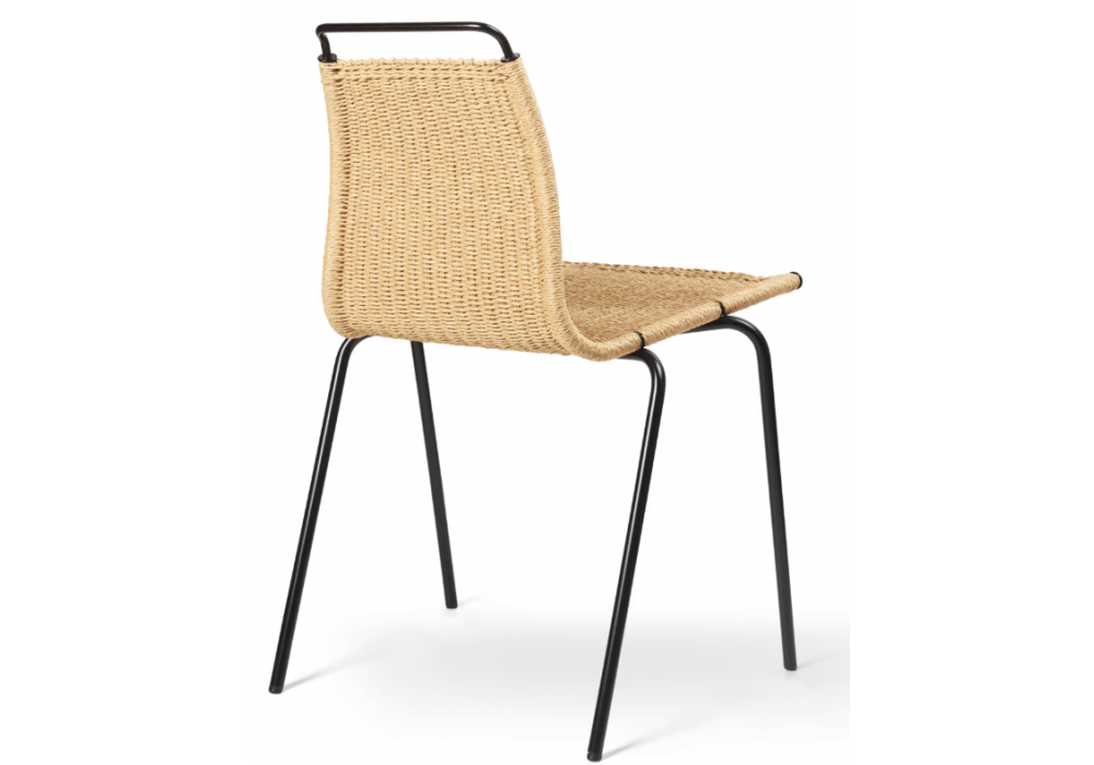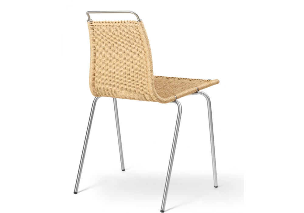 PK1 firmata da Poul Kjærholm per Carl Hansen & Søn è una sedia con struttura in acciaio inossidabile o verniciato a polvere nero. Sedile in paper cord naturale.
