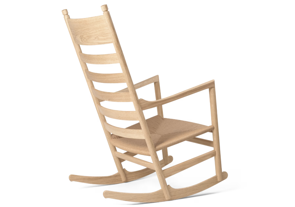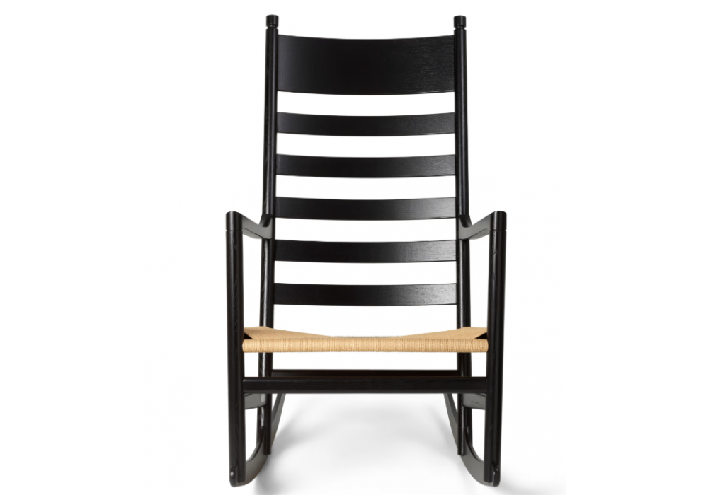 CH45 firmata da Hans J. Wegner per Carl Hansen & Søn è una sedia a dondolo con struttura in massello di rovere in varie finiture. Sedile in paper cord naturale o nera. Su richiesta è disponibile un set cuscini im tessuto o pelle.