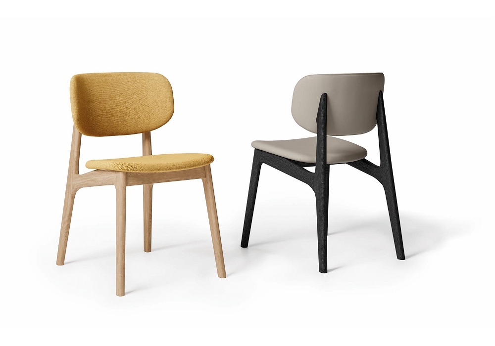 Float firmata da Matteo Zorzenoni per Dall'Agnese è una sedia imbottita realizzata con struttura in legno e rivestimento in tessuto, pelle o ecopelle.
