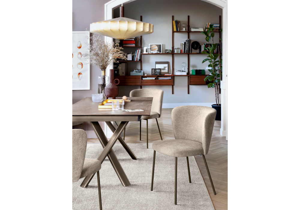 Betty firmata da Connubia è una sedia che presenta una struttura in metallo verniciato, seduta e schienale invece in tessuto o pelle. Disponibile in diverse finiture.