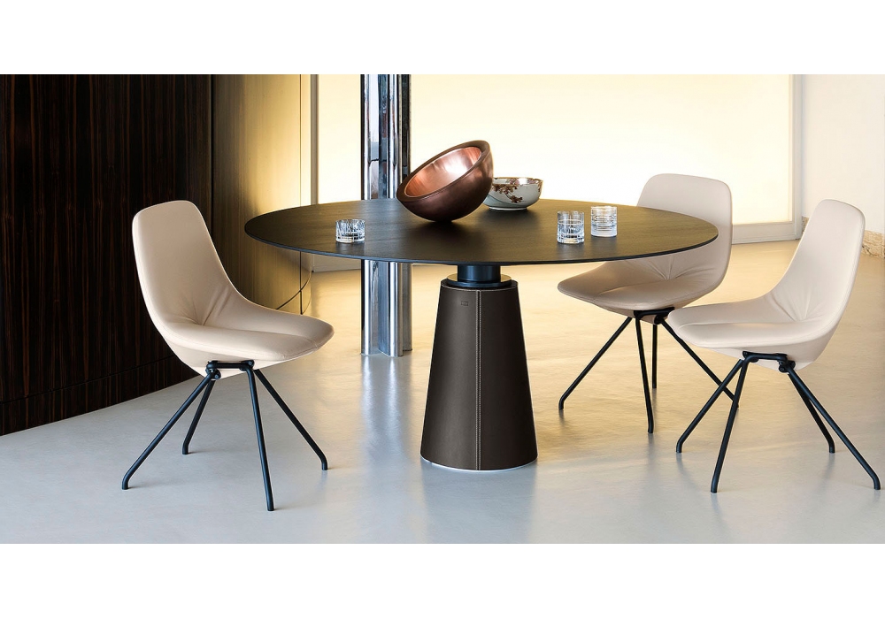 La DU30 fu immediatamente brevettata e comparve sulla copertina del primo numero della rivista Stile Industria nel giugno 1954. La conformazione unitaria del sedile e dello schienale dà luogo ad un taglio-cucitura centrale che non può non ricordare le coeve opere di Lucio Fontana. La poltroncina DU 30 è una monoscocca sagomata in rete d’acciaio con imbottitura in poliuretano espanso ottenuta da stampo. Gambe in tubolare di ferro piegato e saldato verniciate nero testurizzato raggrinzante (NERO RAL 9005). Rivestimento in Pelle Frau®. La scocca, dotata di una costola inferiore, viene fissata tramite viti direttamente a ciascuna coppia di gambe.
