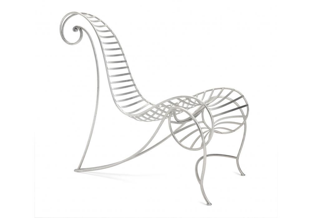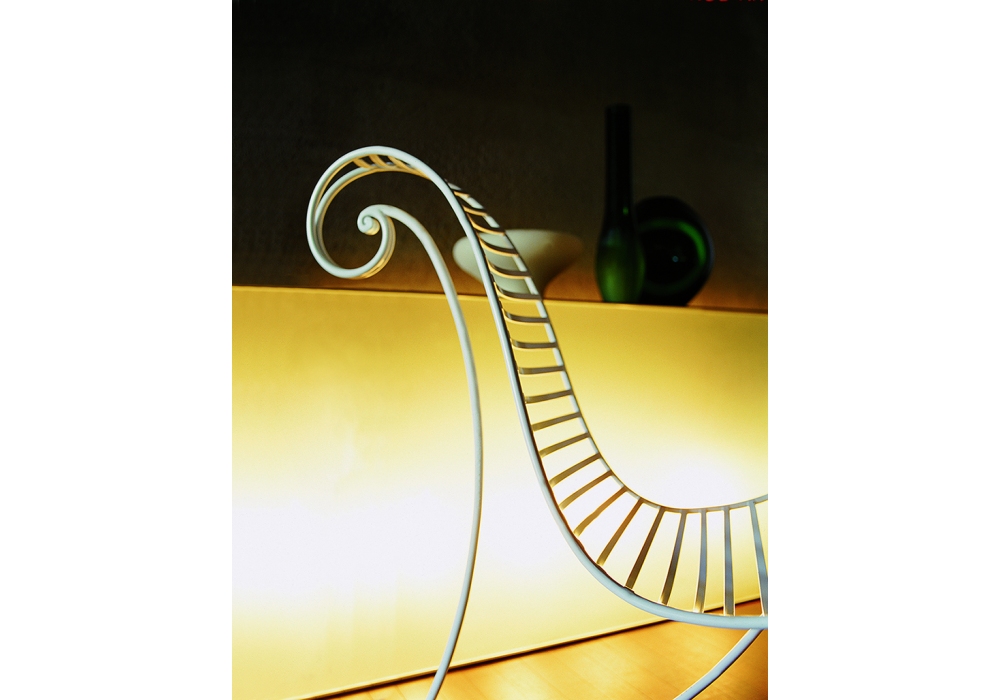 Spine Chair firmata da André Dubreuil per Ceccotti Collezioni è una sedia con struttura in tondino di ferro, diametro 10mm. Seduta realizzata in listelli di ferro piatto da 10 mm. Colori disponibili: bianco, arancio, azzurro, nero, foglia oro, foglia argento.