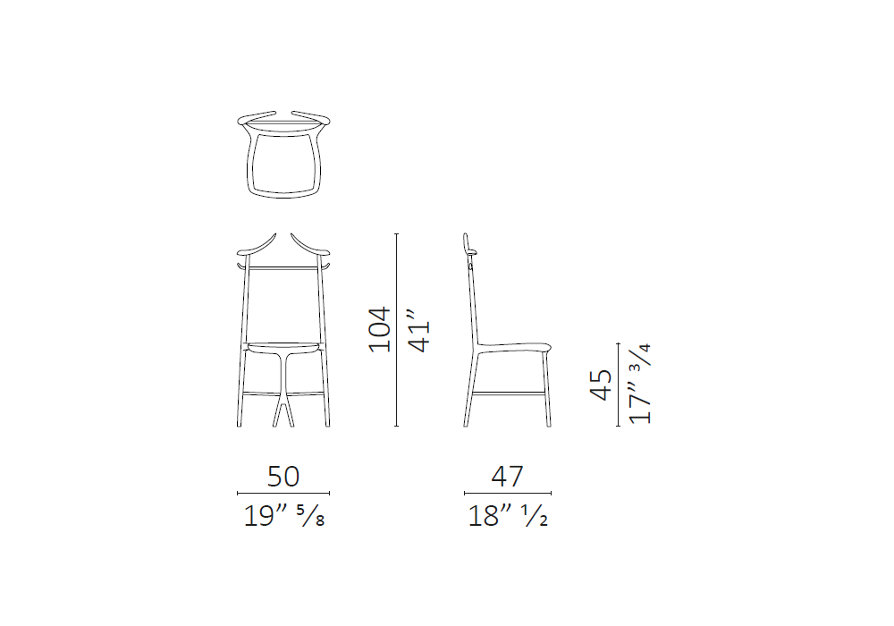 Chambre Close di Ceccotti Collezioni è una sedia porta abiti realizzata in legno massello di noce americano, seduta in multistrato imbottito.