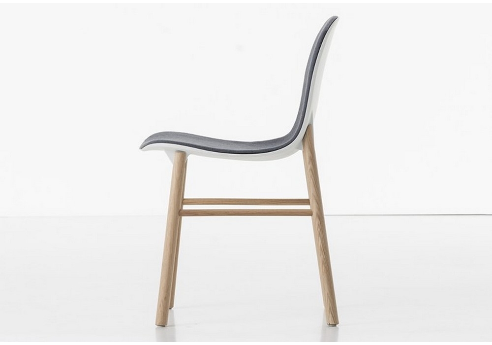 Sharky disegnato da Neuland. Paster & Geldmacher per Kristalia è una sedia con scocca in poliuretano disponibile in diversi colori, rivestimento frontale in tessuto o pelle e base in legno massello proposta in diverse finiture.