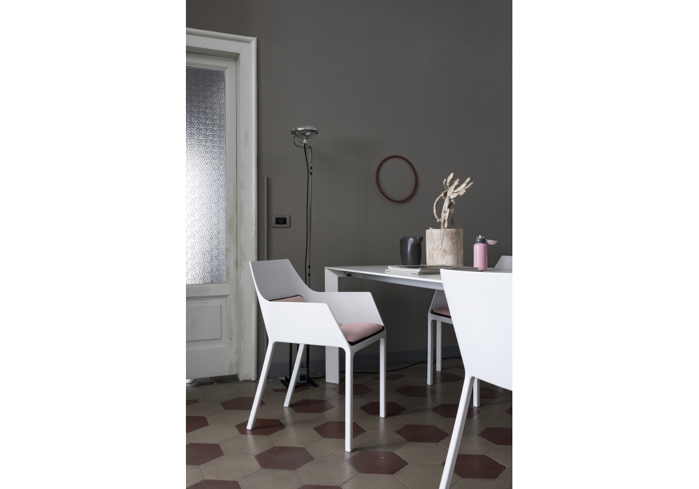 Mem firmata da Christophe Pillet per Kristalia è una sedia con braccioli realizzata in polipropilene rinforzato con vetro e stampato a iniezione; unisce un’estrema resistenza con un disegno elegante, fatto di angoli e curve sapientemente accennate. La sedia è caratterizzata da due fori che la rendono impilabile, mantenendo questa poltroncina con una forma completamente avvolgente.