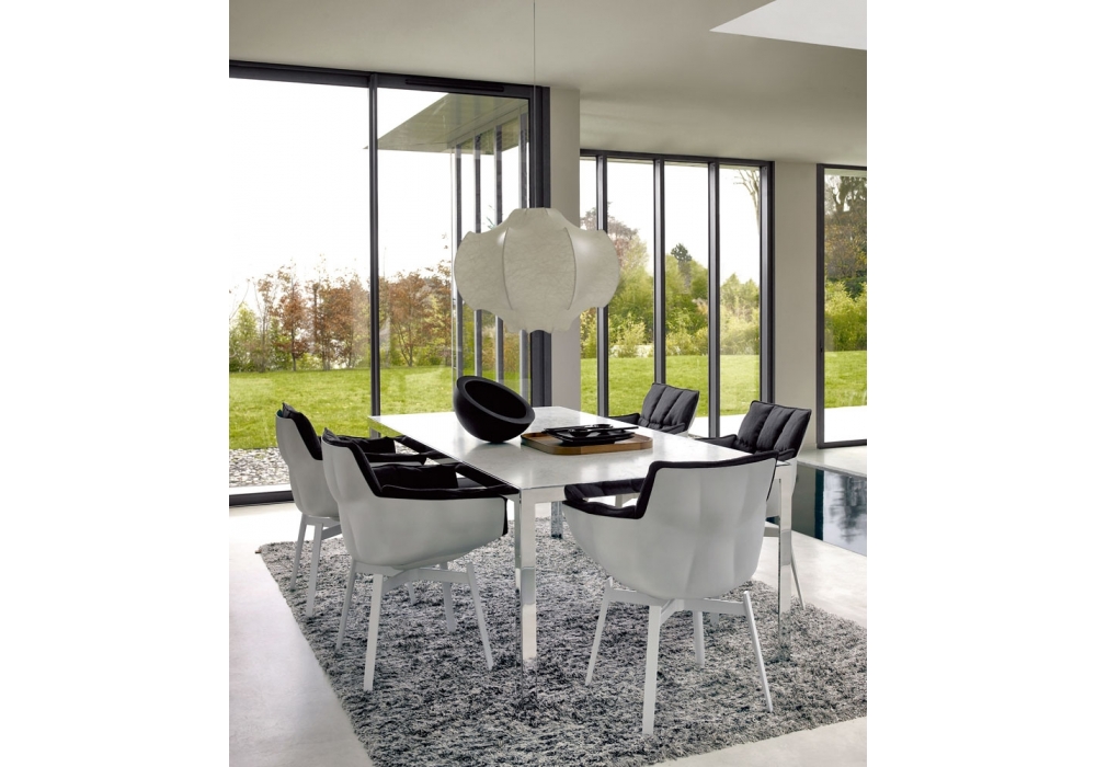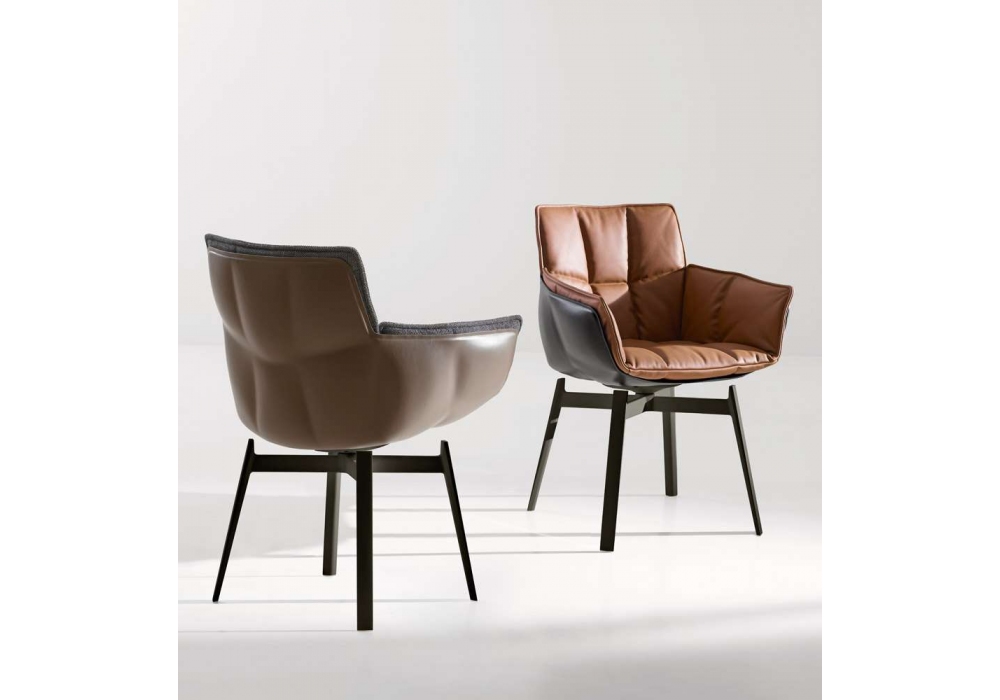 Husk firmata da Patricia Urquiola per B&B Italia è una sedia con struttura in alluminio verniciato, scocca in Baydur® in differenti finiture o rivestita in cuoio. Rivestimento in tessuto o pelle. Disponibile nella versione fissa o girevole.