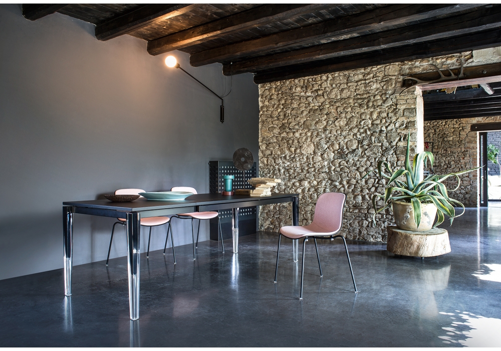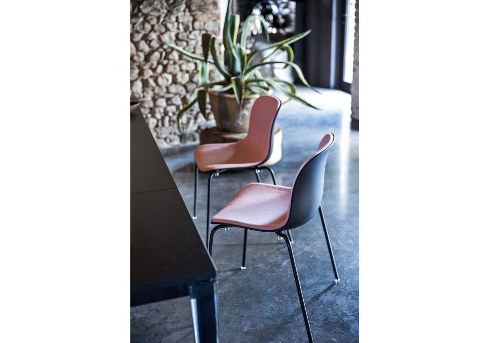 Troy Chair Fabric firmata da Marcel Wanders per Magis è una sedia con struttura in tubo di acciaio cromato o verniciato poliestere, sedile in poliestere o faggio. Seduta con fronte anteriore imbottito in poliuretano e rivestito in tessuto o pelle.